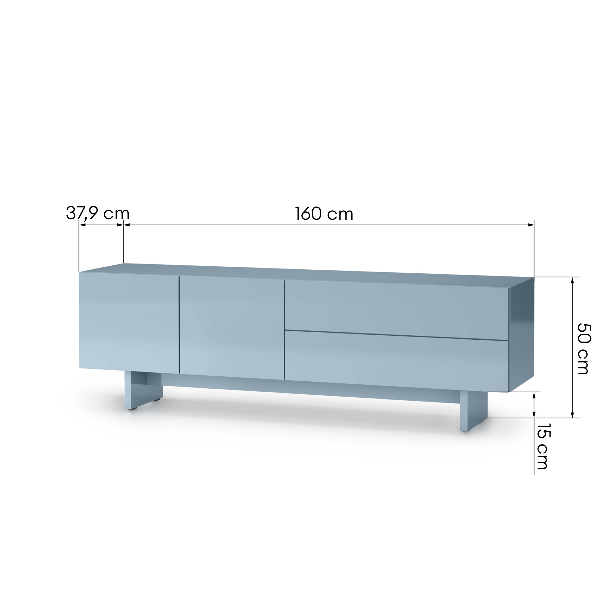 Consolă TV GLIM 160×38 albastru fumuriu lucios