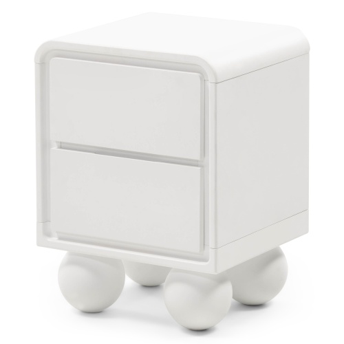 Aduceți farmec și funcționalitate unice în dormitorul dvs. cu noptiera noastră Lauria. Fabricată din MDF solid și melamină albă pură, noptiera oferă camerei dvs. un aspect proaspăt și modern. Marginile rotunjite, picioarele sferice și finisajul mat conferă noptierei un farmec subtil, creând un design armonios și modern.
